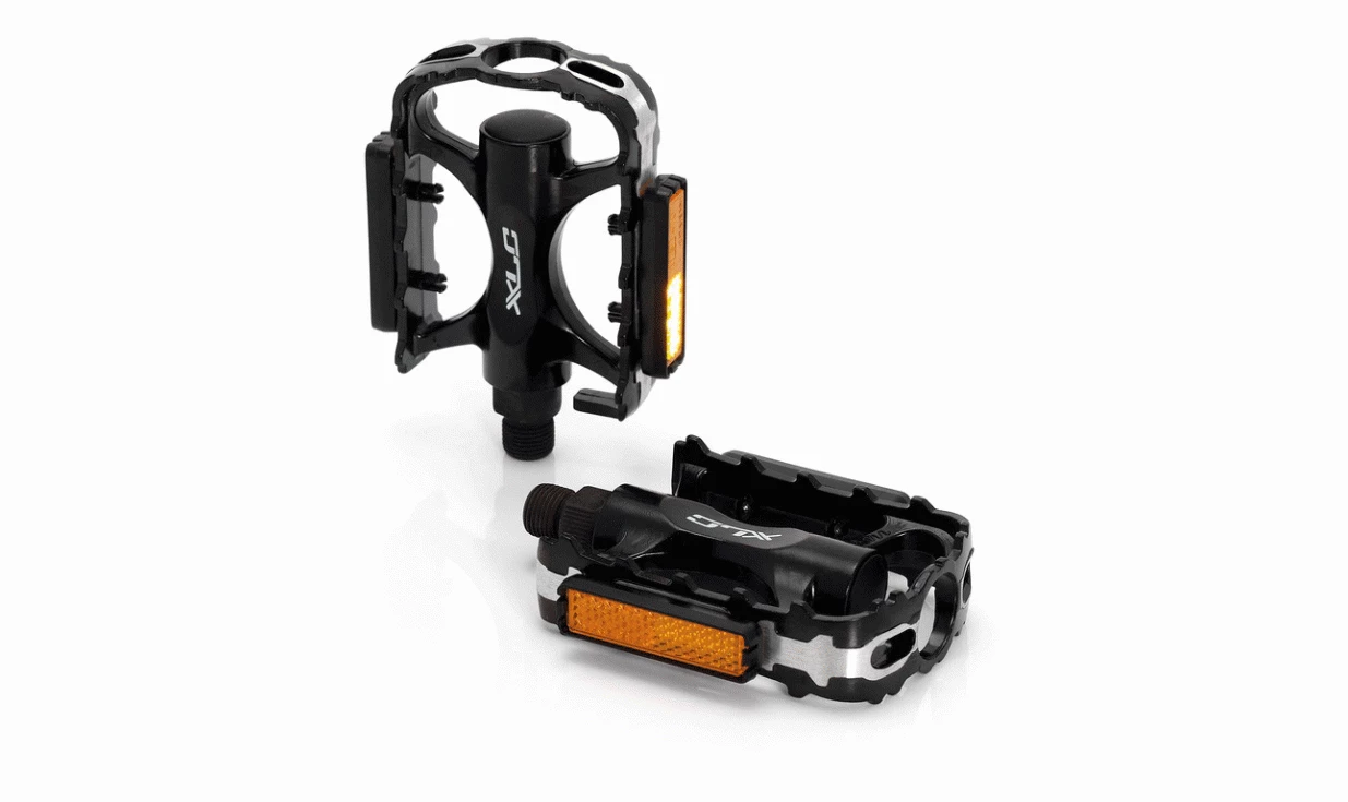 Pédales pour vélo tout terrain avec corps et cadre en aluminium, légères et résistantes aux chocs.